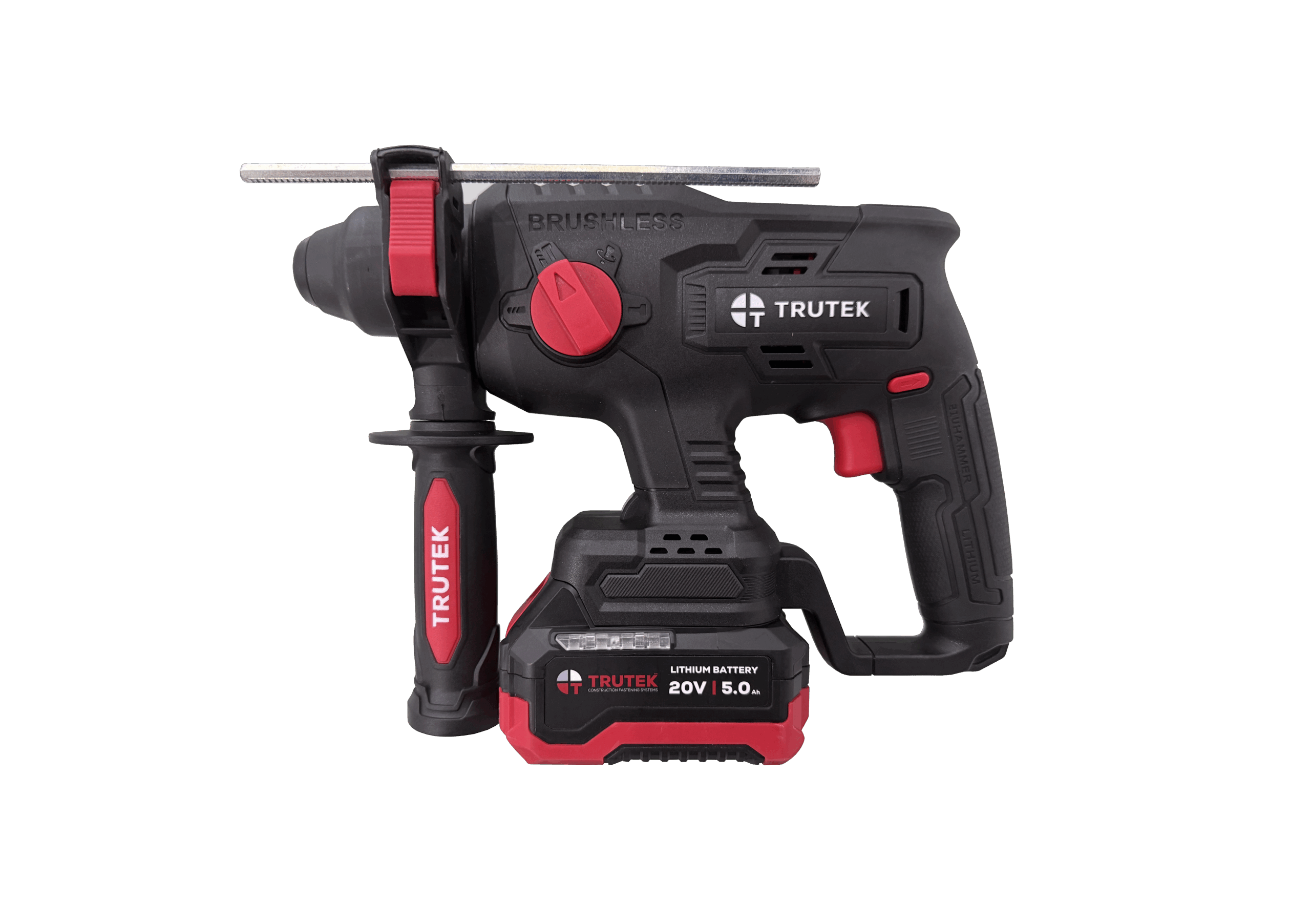 The Trutek 1.7 J Cordless Rotary Hammer is a compact, high-performance SDS‑Plus rotary hammer drill powered by a long-lasting 20V 5.0Ah lithium-ion battery. It delivers up to 1.7 joules of impact energy, making it ideal for precise and efficient drilling in concrete up to 20 mm. Lightweight yet durable, it features multiple operation modes and ergonomic controls for use across a wide range of construction and installation tasks.